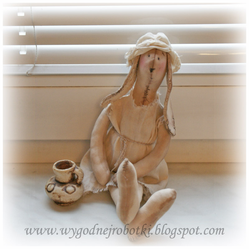 Zachciało mi się królika tildowego ale troszkę innego, więc został brutalnie i w szybkim tempie postarzony. Aż mi bidy teraz trochę szkoda ale myślę, że warto było go pomęczyć. Aczkolwiek postarzanie wyglądało jak sceny z horroru:)